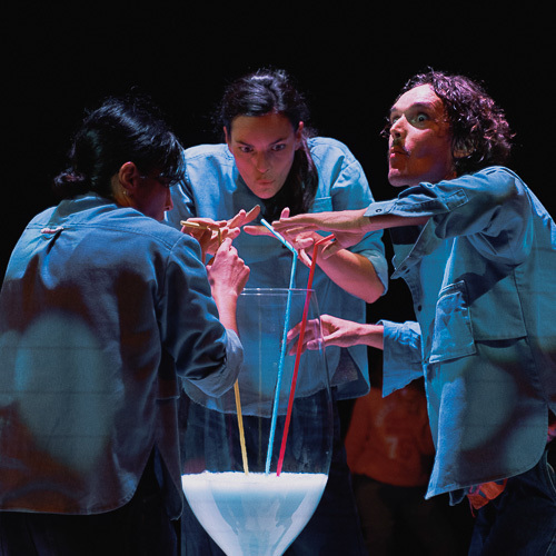 Afficher le planClémentine Maubon & Bastien Lefèvre Cndc, en partenariat avec le THV Dans un écrin poétique, comme une sorte de « cabaret laborantin », la compagnie La Grive invite le public à une dégustation, entre breuvages mystères et danse contemporaine. Photo © Morgan Richard